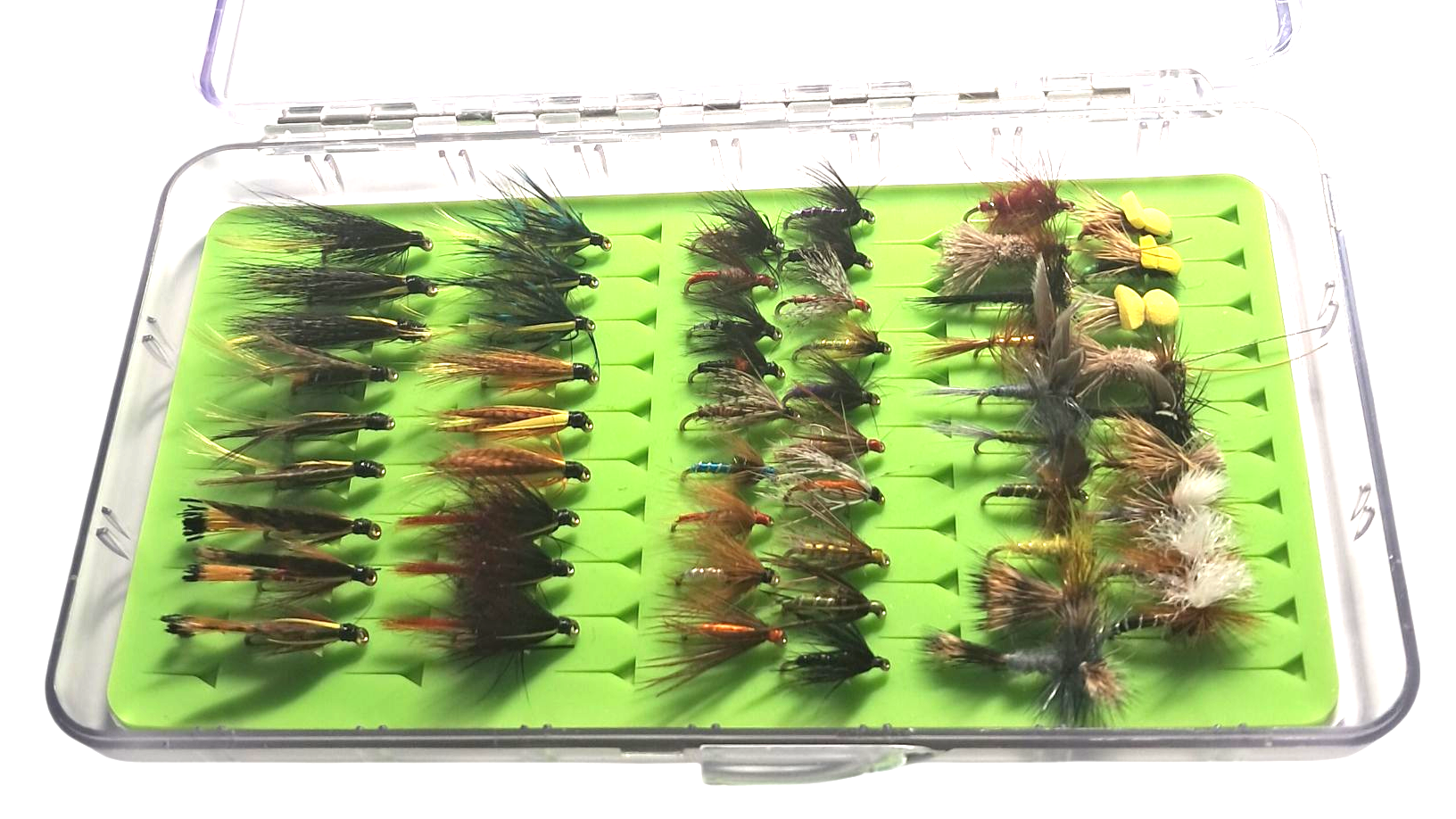 The fly box has 36 dry, wet, nymph or spider - total 36 flies. Alternatively, The fly box has 18 salmon patterns - total 20 salmon flies. 6 options to choose from €35 (€44.50 if bought separately)