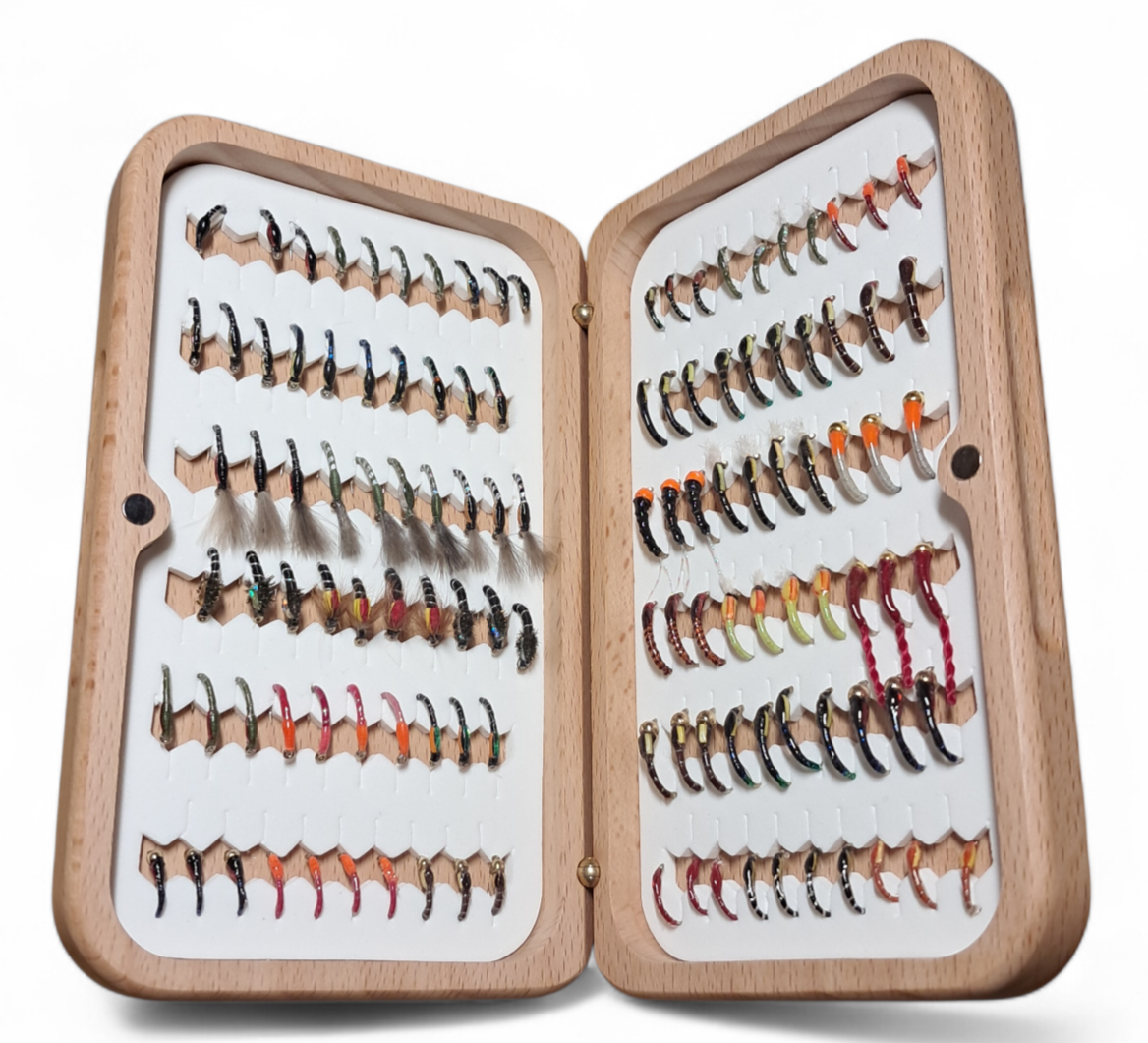 A special limited time offer - a large Mayfly Wooden Fly Box with 100 mixed buzzers and diawl bachs (box shown is 100 buzzers) at the great price of €90. The 100 buzzers and diawl bachs alone, when bought separately would cost you - €90